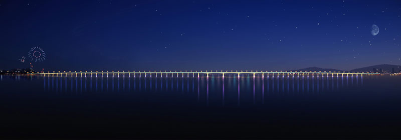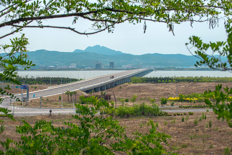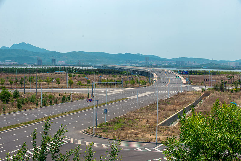 十四號路跨海橋項目橫跨普蘭店灣,南起石河街道北海村,北至炮臺街道鮑魚島村,連接南岸規劃濱海路和北岸規劃三號路,通車后使普蘭店灣中段南北兩岸間的車程縮短了30分鐘左右。線路全長2881.82米,總投資約8億元。